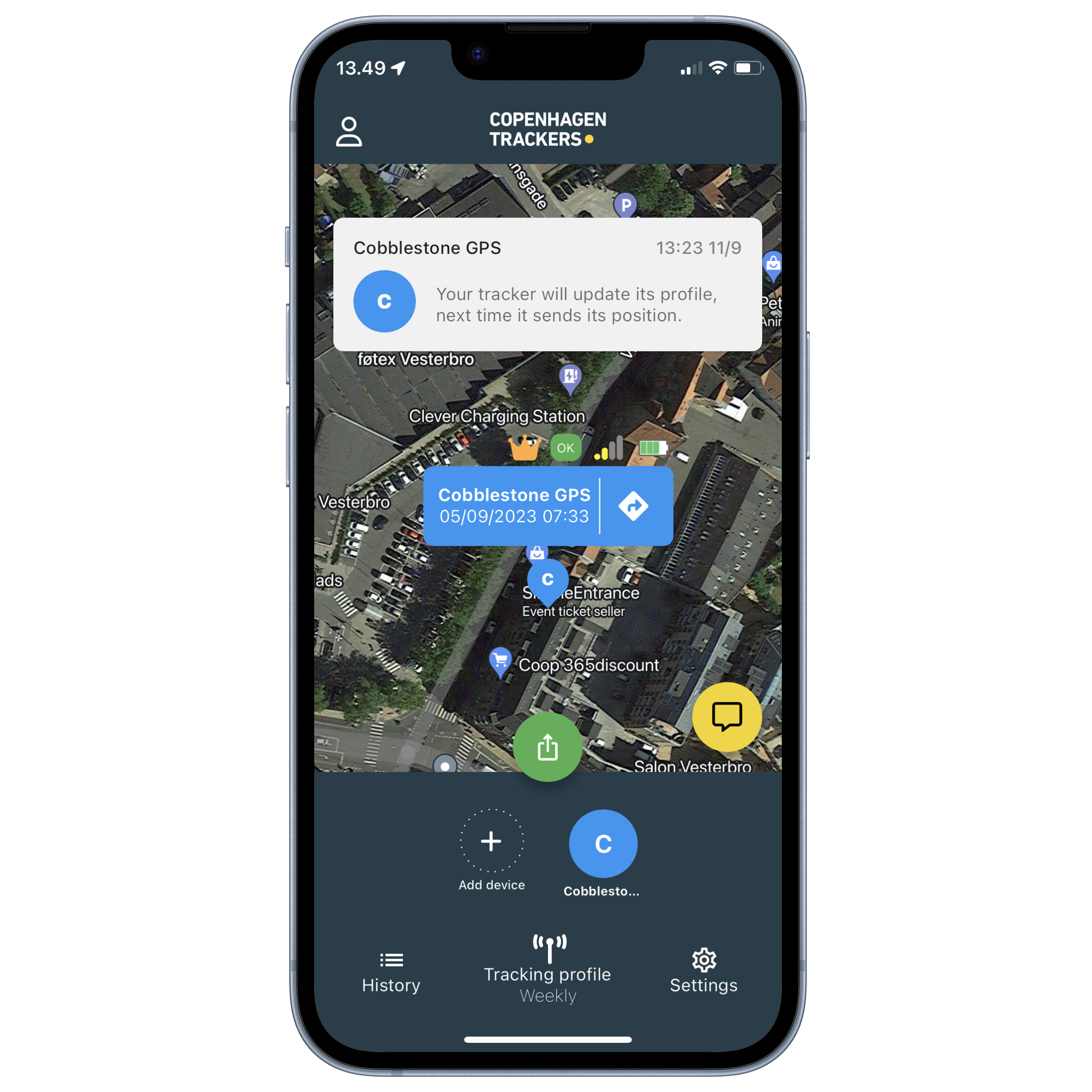 Houdt er rekening mee dat een nieuw profiel pas actief wordt zodra de tracker zijn positie deelt. U kunt de GPS tracker niet "pingen".